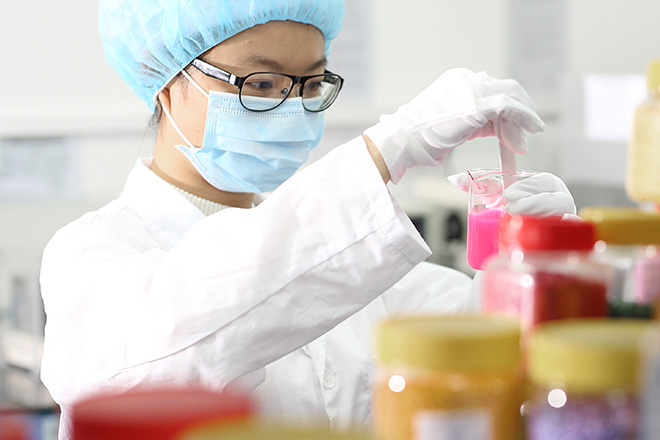 根據(jù)色母、色粉、工程塑料的物性制定相應(yīng)技術(shù)標(biāo)準(zhǔn)及工藝配方、其中技術(shù)人員38人,占總?cè)藬?shù)30%,為廣東省高新技術(shù)企業(yè)。自主申請發(fā)明專利2項(xiàng),實(shí)用新型專利1項(xiàng)。